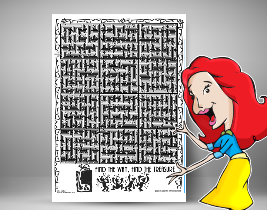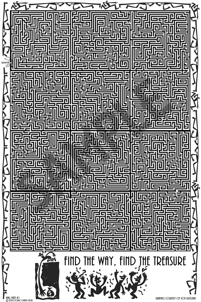 A 36" x 24" inch maze poster of medium difficulty, printed on 24 lb. paper. It does not come with a frame.  It does come with the solution should you need it. Great for these locked down days and as an accent piece to any home. Shipped first class in shipping tube.